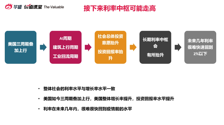 言财老师认为,这是因为美国当前正处于人工智能、建筑业和工业回流三个周期的上行区间,投资回报率的预期上升,而借款成本也可能随之提高,因此利率水平难以迅速降低。但同时,激进加息的必要性正在下降,美联储的底气来源于美国的经济,一旦出现“黑天鹅”事件,降息就成为必然。