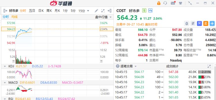美国零售巨头Costco $COST 涨超2%,报564.23美元。
