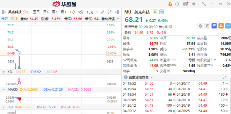 美光科技 $MU 盘前跌逾5%,截至8月末的第四财季,美光的营收高于分析师预期、亏损低于预期。美光称,明年开始生产AI芯片用内存,预计2024财年盈利能力将改善。