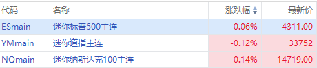 华盛资讯9月28日消息,美三大股指期货集体走弱,截至发稿,纳指期货 $NQmain 现跌0.14%,标普500指数期货 $ESmain 跌0.06%,道指期货 $YMmain 跌0.12%。
