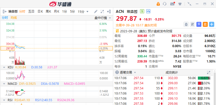 埃森哲 $ACN 跌超5%,2023财年Q4收入同比增长4%至159.8亿美元,低于市场预期的160.7亿美元。其中,咨询收入同比下降2%,至82亿美元。