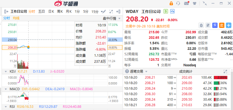 Workday $WDAY 跌超9%,该公司周三晚间下调了较长期年度认购增长指引。