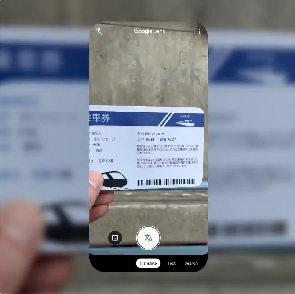 使用谷歌Lens翻译车票上的文字,图源:谷歌