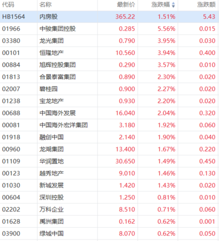 内房股今日扭转颓势,强势反弹,截至发稿,龙光集团、旭辉控股集团涨超3%,碧桂园涨超2%,融创中国涨超1%。