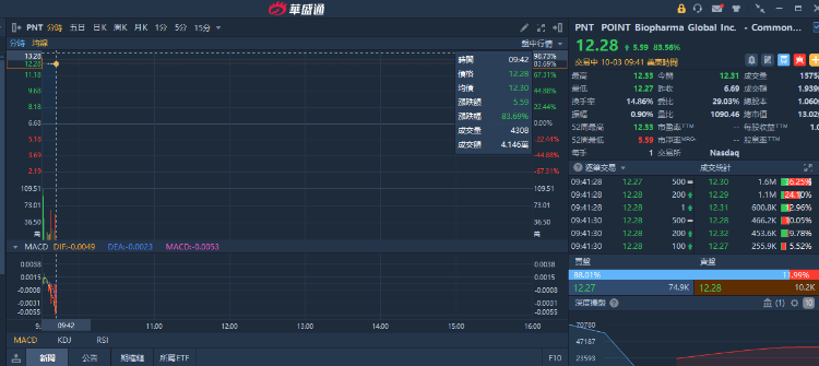 收购价每股12.5美元较Point Biopharma周一收市价飙87%,Point Biopharma周二股价飙升超80%。