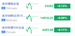 华盛资讯10月5日消息,美股三大期指集体小幅下跌,截至发稿,纳指期货 $NQmain 现跌0.09%,标普500指数期货 $ESmain 跌0.11%,道指期货 $YMmain 跌0.13%。
