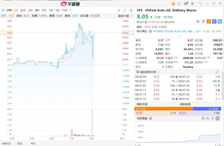 在最新业绩刺激下,VinFast盘前一度涨超7%。截至发稿涨5.96%至8.53美元。