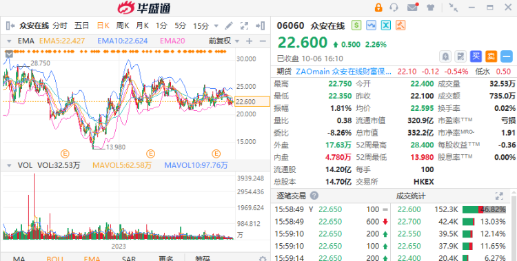 截至2023年6月30日止之半年度业绩为保险服务收入126.93亿元人民币,按年增长23.8%。期内转亏为盈2.21亿元人民币。集团总部设于上海,但不设任何分支机构,完全透过网络发展业务。由保险+科技双引擎驱动。再利用新技术优化保险业务,重点在健康、生活消费、消费金融、汽车及旅游等。