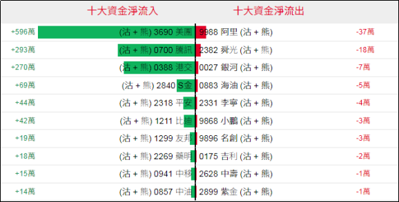 淡仓(认沽证及熊证)方面,周一美团相关淡仓录得约596万港元资金净流入,腾讯、港交相关淡仓单日录得约293万、270万港元资金净流入; 相反,阿里相关淡仓单日录得约37万港元资金净流出,舜光、银河相关淡仓单日分别录得约18万、7万港元资金净流出。