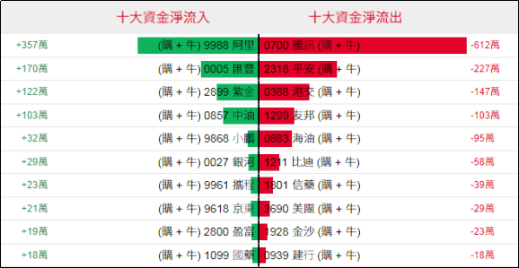 好仓(认购证及牛证)方面,周一阿里相关好仓单日录得约357万港元资金净流入,汇丰、紫金相关好仓单日分别录得约170万、122万港元资金净流入; 相反,腾讯相关好仓单日录得约612万港元资金净流出,平安、港交相关好仓单日分别录得约612万、227万港元资金净流出。