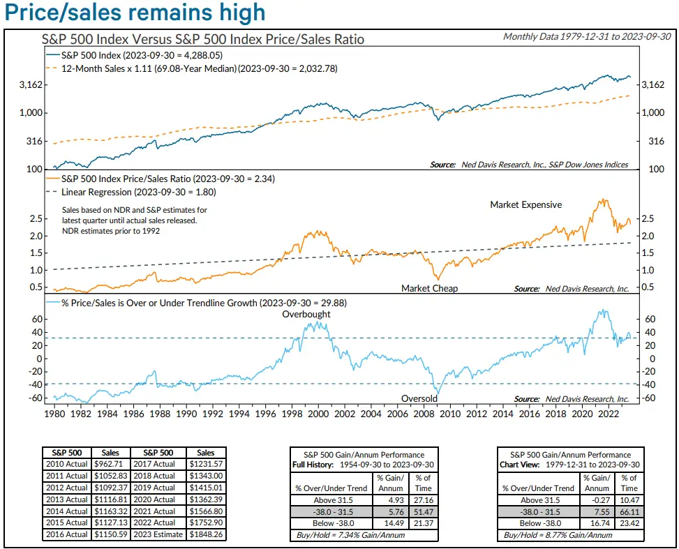 标普500指数的市销率仍然过高,目前已高于2000年互联网泡沫时期的峰值。对戴维斯来说,这表明股市太贵了。