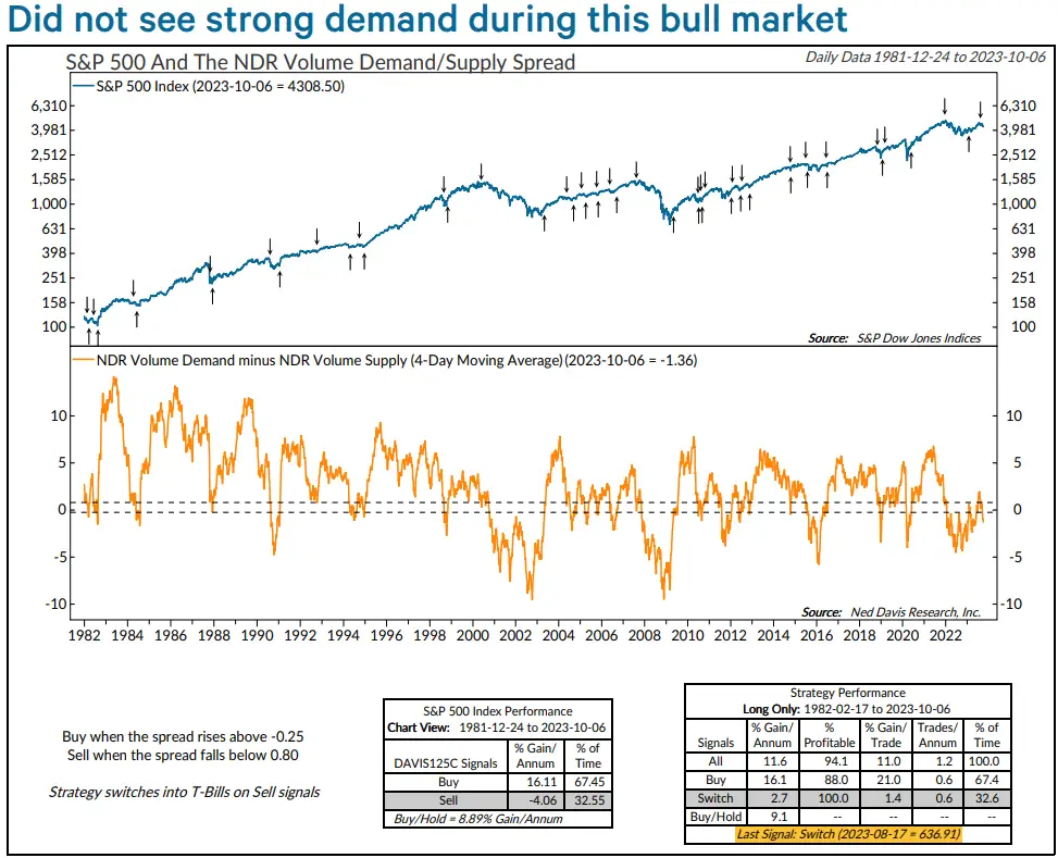 但他表示,“在本轮牛市中并未出现这种情况,显示潜在需求疲弱,并且在8月17日发出卖出信号。”