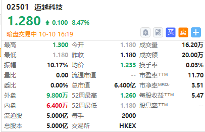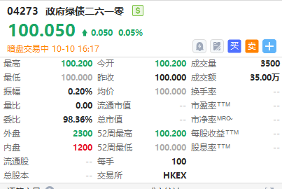 华盛资讯10月10日讯,IT解决方案服务提供商迈越科技、政府绿债二六一零正在暗盘交易。截至发稿,迈越科技涨超8%,中签一手账面浮盈200港元;政府绿债二六一零现微涨0.05%。