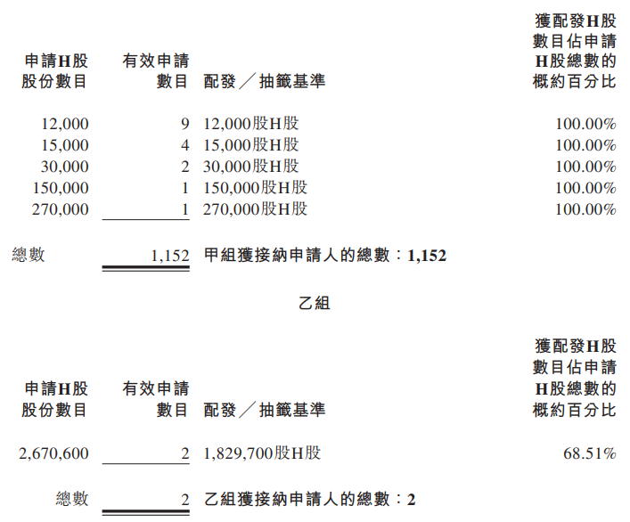 详细配发结果如下: