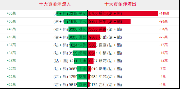 淡仓(认沽证及熊证)方面,周二平安相关淡仓录得约65万港元资金净流入,小米、港交相关淡仓单日录得约50万、40万港元资金净流入;相反,腾讯相关淡仓单日录得约149万港元资金净流出,阿里、美团相关淡仓单日分别录得约90万、38万港元资金净流出。