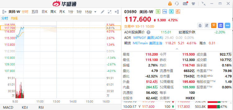 截至2023年6月30日止之半年业绩为营业额上升30.2%至1,265.82亿元人民币,并转亏为盈,股东应占盈利80.46亿元人民币。期内整体毛利率增加8.6个百分点至35.7%。集团是运用不同投票权操作。主要可分为两A股,每股拥有10票投票权,和B股仅拥有一票投票权。并以同股不同权模式到香港交易所上市。在平台上的消费者、商家或网络配送,已稳固在市场上的领导地位,为全球领先的餐饮外卖服务供应商。为确保配送服务的优越性,加强在非高峰时段、极端天气、假日配送及网络配送的调动能力。得益于用户数量及购买频次提升,日订单超越1,100万。协助商家进行在线营运,提供流量、补贴及各种营销工具,至年活跃商家同增加30%。联动药店及药企,将24小时药店扩展至全国。为消费者提供医疗咨询及买药服务。为更多低线市场提供医疗资源。