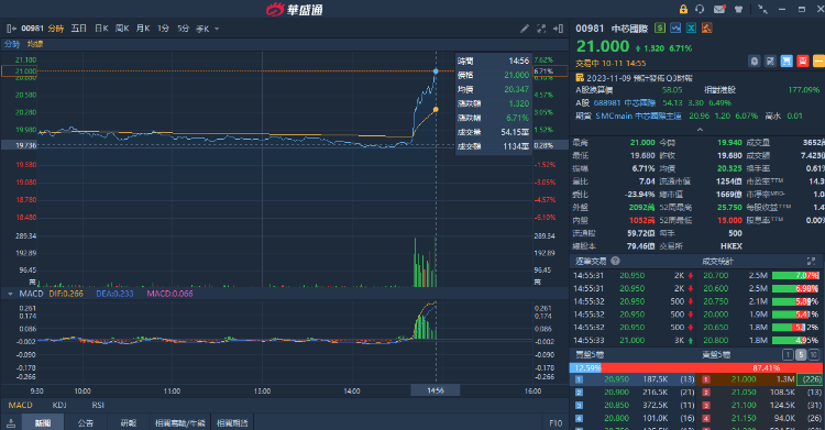 中芯国际A股尾盘快速拉升涨超6%,成交金额超10亿;H股亦拉升涨超6%,成交额超7.4亿港元。