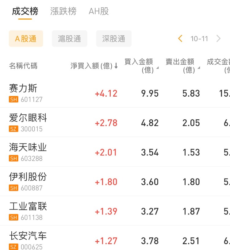 华盛资讯10月11日讯,南向资金今日净买入港股13.33亿港元,其中港股通(沪)净买入5.48亿港元,港股通(深)净买入7.85亿港元。