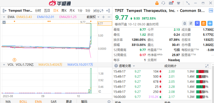 3、Tempest治疗 $TPST 单日暴涨近40倍!旗下在研肝癌药现重大进展,公司启动“毒丸计划”防被收购。