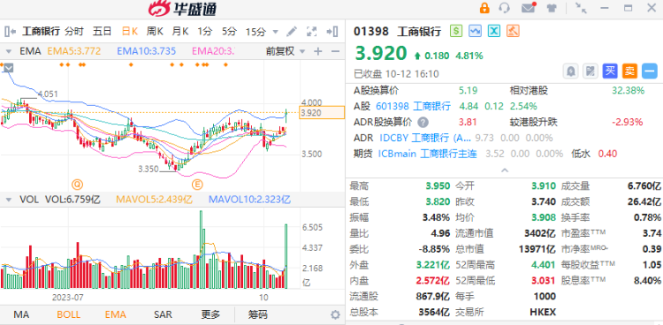- 工行23Q2单季度归母净利润较22Q2(调整后)同比增长2.52%,较23Q1利润同比增速(0.02%)有明显增长。海通国际看好公司私人银行业务发力,因此给予目标价5.49元。