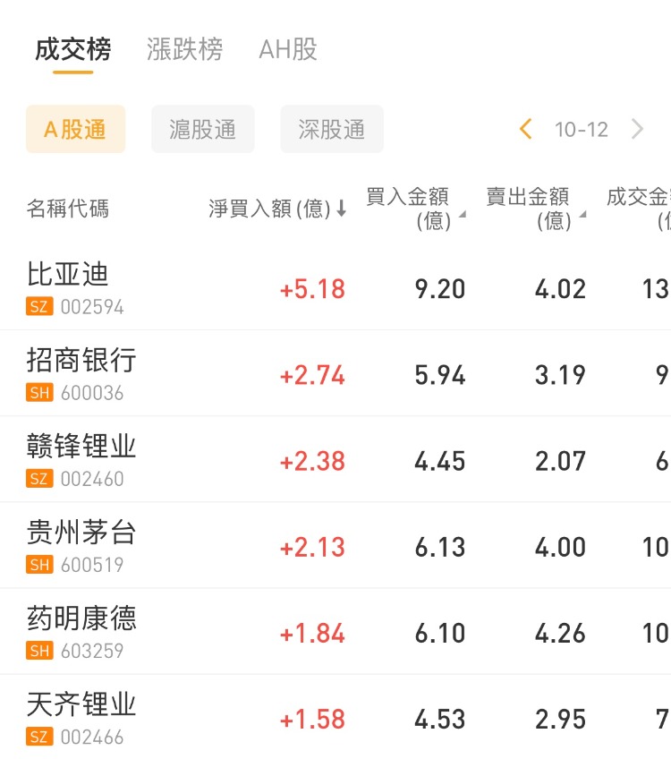 北向资金今日大幅净买入66.16亿元。比亚迪、招商银行、赣锋锂业分别获净买入5.18亿元、2.74亿元、2.38亿元。赛力斯净卖出额居首,金额为2.29亿元。