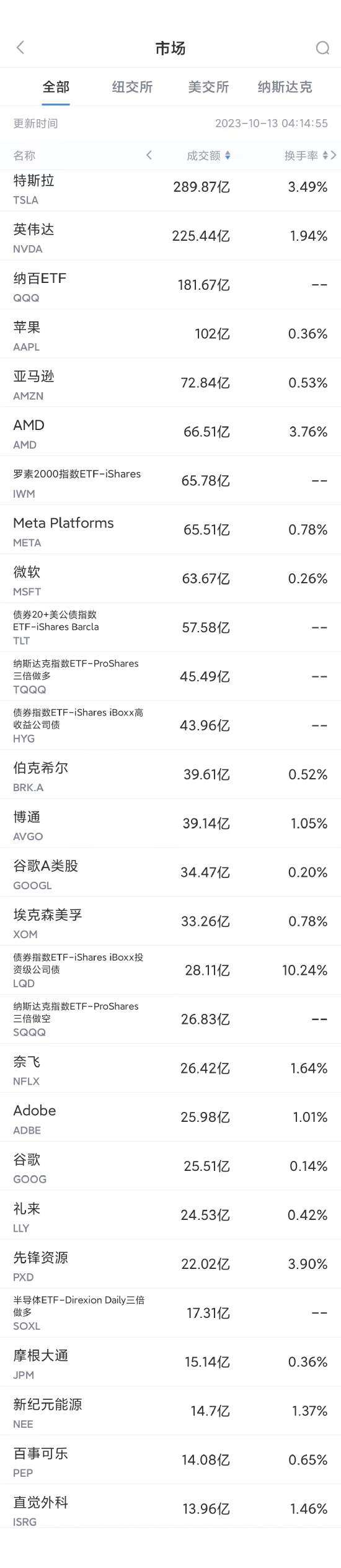 以下为美股当日交易最活跃的20只股票(按成交额):