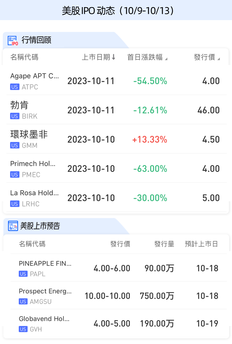美股IPO动态
