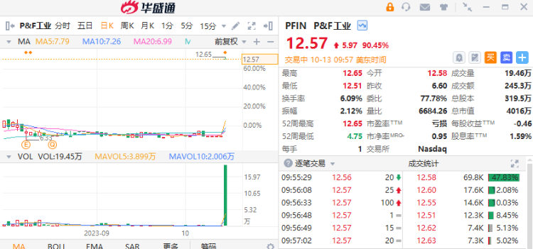 P&F Industries $PFIN 涨超89%,此前这家工具制造商同意以约4150万美元的价格被私募股权投资公司ShoreView Industries以约4150万美元的价格收购。