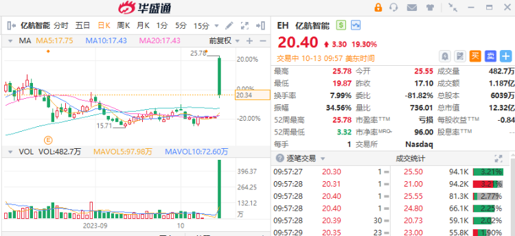 亿航智能 $EH 涨超19%,获中国民航局颁发无人驾驶载人航空器型号合格证。