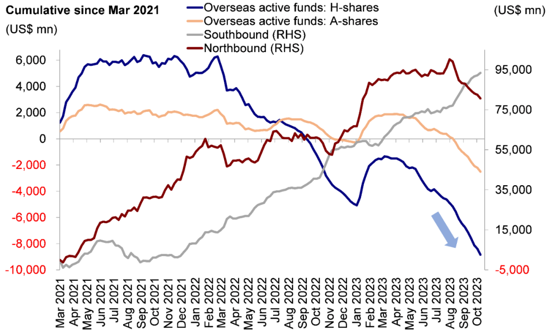 图表:海外主动型基金过去15周连续流出海外中资股市场