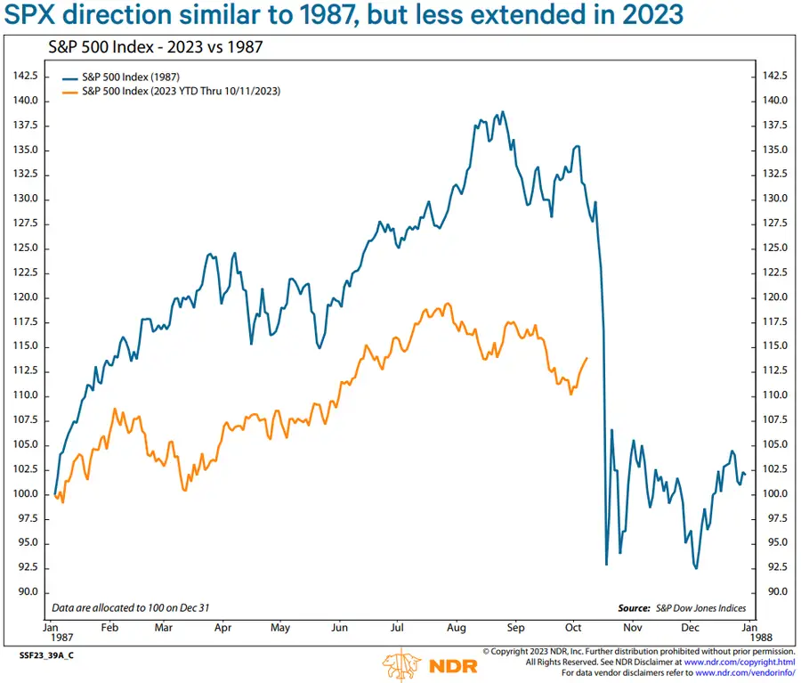 Ned Davis Research(NDR)的数据显示,目前的股市与1987年的股市有着惊人的相似之处,但这并不意味着类似的10月崩盘会再次发生。