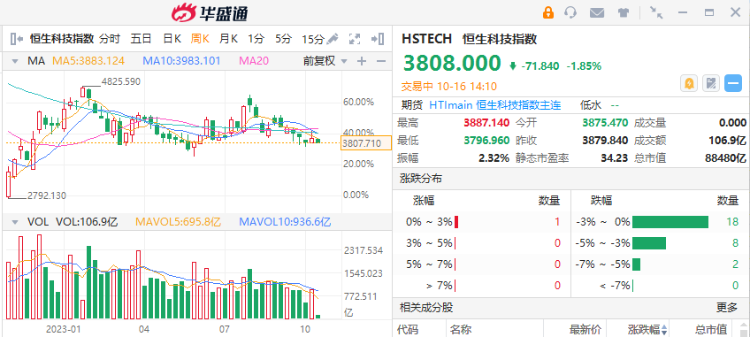 截至发稿,恒生指数跌0.88%,恒生科技指数跌1.85%,国企指数跌1.02%。