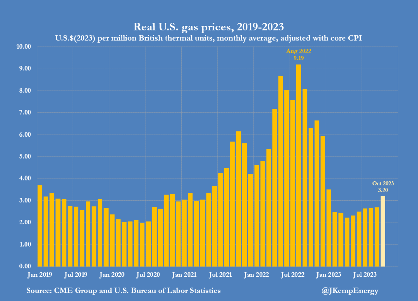 10月近月天然气期货均价为3.20美元,为1月以来最高,4月仅为2.20美元。