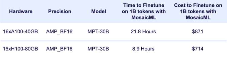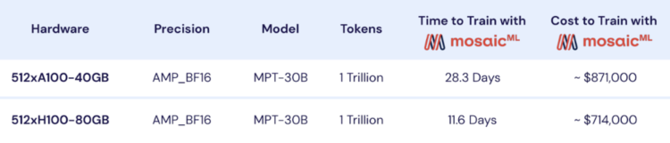 MPT-30B是第一个使用H100训练的开源LLM(大语言模型),实际训练只耗费了11.6天;相比之下,使用前一代的A100训练则需要28.3天[7]。如若换成参数规模更庞大的AI,例如1800B的GPT-4,效率差异会更加明显。跑马圈地的时代,时间就是一切。