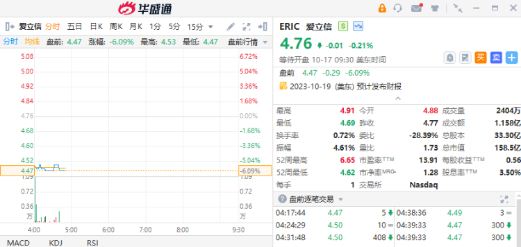 爱立信盘前跌超6%,Q3净销售额645亿瑞典克朗,同比下滑5%;净亏损305亿瑞典克朗,上年同期盈利54亿瑞典克朗。公司预计第四季度EBITA利润率约为10%,并将无限期推迟实现15%至18%的目标。