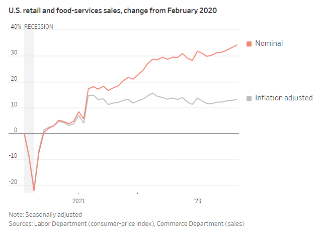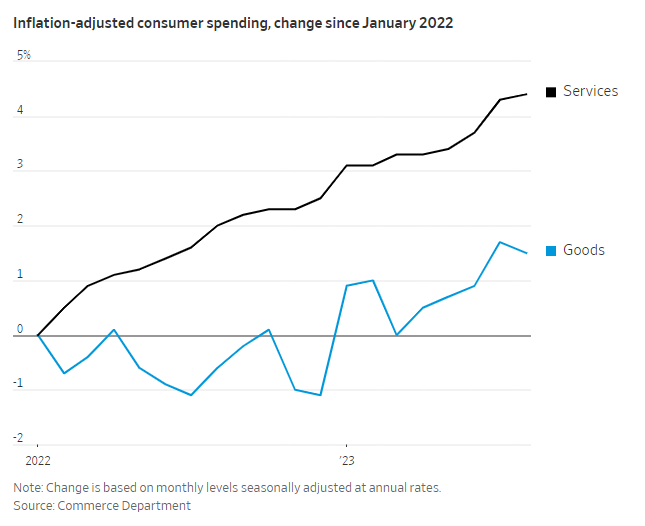 在经济学家的预期之中,联邦基金利率高企,通胀率居高不下,美国家庭在疫情期间积攒的储蓄正在减少。然而,美国消费者仍处于消费狂潮中。