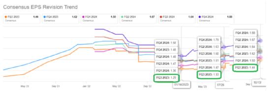 26 项 EPS 修正中,有 25 项向上,27 项收入修正中,25 项也向上。这再次与第二季度形成鲜明对比,第二季度 27 项收入修正中只有 19 项是上调。