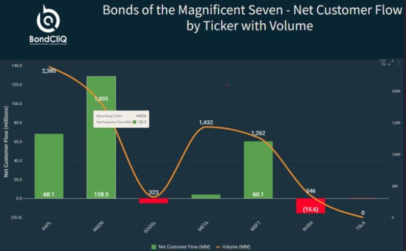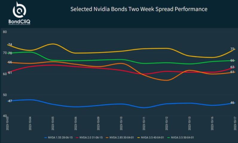 英伟达的债券是这一时期的异类,遭受了较大净卖出量,但该公司部分债券与同等“无风险”国债收益率之间的价差在这一时期有所收紧。