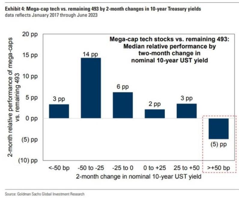 策略师们表示,一个关键驱动因素是长期收益率的上升,“面对美国国债收益率飙升,最大的长期科技股表现不佳,这与过去五年的交易模式一致:面对名义10年期收益率在两个月内上涨超过50个基点,最大的股票往往会举步维艰。”