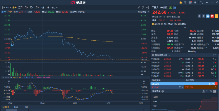 美股周三盘后,特斯拉公布了三季度财报。财报显示,其第三季度毛利率下降至17.9%,略低于华尔街预期的18%,原因是该公司一直采取降价的方式提振销量。盘后该公司股价陷入剧烈波动之中,目前跌逾4.57%。