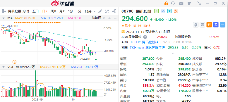 腾讯昨日跌至300元关口,短线料考验月初低位295.4元,如打算部署技术反弹,宜待股价回稳后才候低吸纳。如看好腾讯可留意认购证20071,行使价371.08。