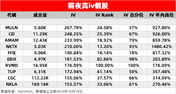 1、Camber Energy:股价隔夜暴涨19%,为美国一家是有勘探公司。隔夜该股期权成交量增加至1.13万张,隐含波动率上升至248.25%。
