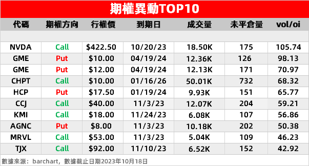 1、特斯拉:股价隔夜跌4.78%,盘后披露不及预期的Q3季报后股价再跌4%,公司计划将于11月30日交付Cybertruck。隔夜其期权成交量绩前激增至179万张,Put成交额17.8亿美元,为Call单成交额的2.4倍,其中一末日Put单最高飙涨317%。