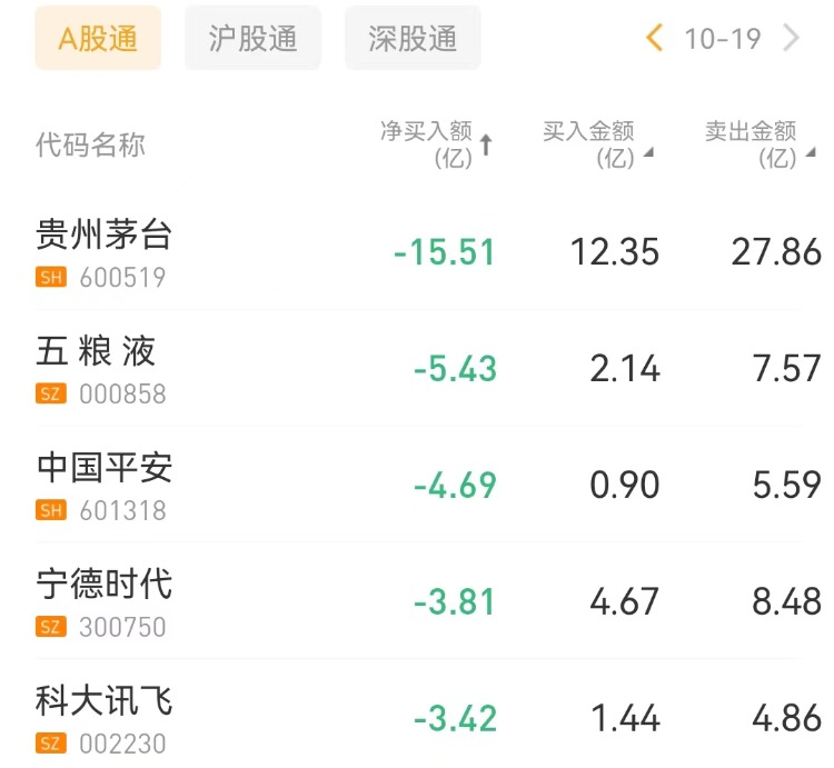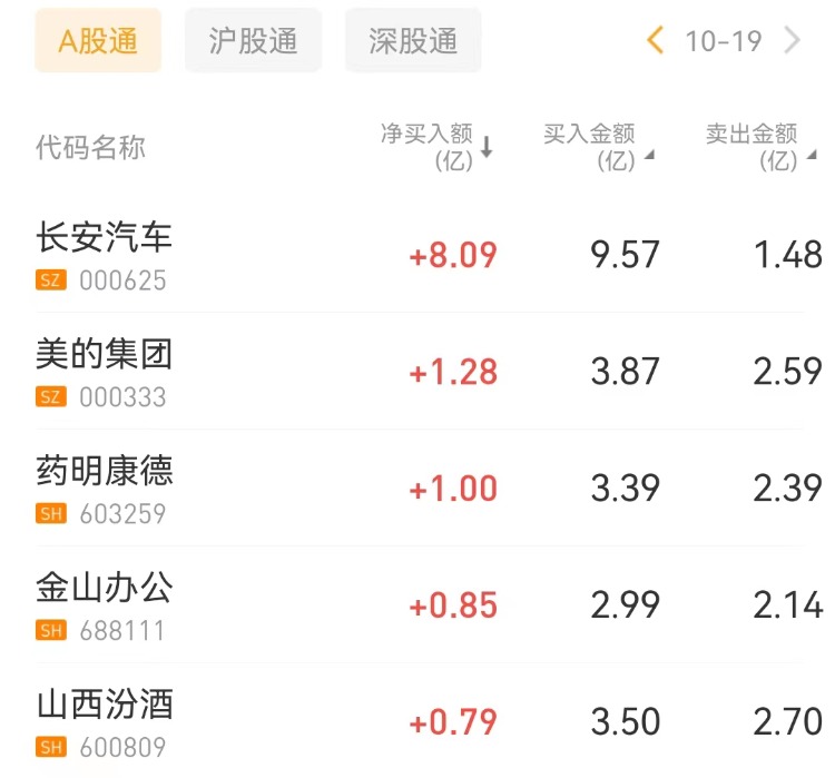 北向资金买入长安汽车,沽出贵州茅台