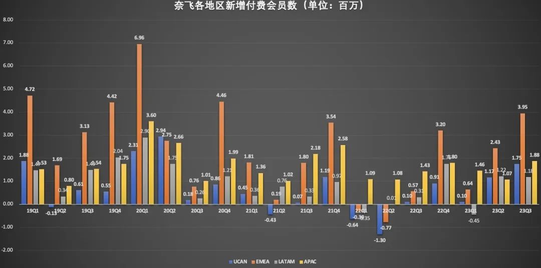 对于未来转换空间有多大,格雷格·彼得斯在Q3财报电话会议中表示,打击付费账户共享的计划会在接下来的几个季度持续进行,“我们预计如之前几个季度一样,未来几个季度还将有付费共享用户的新增,我所说的是公司非常健康的有机增长之外的新增。还有一部分用户我们在未来几个季度不会进行转换,包括数亿符合转换标准的智能电视家庭用户,我们计划在未来几年完成转换。”