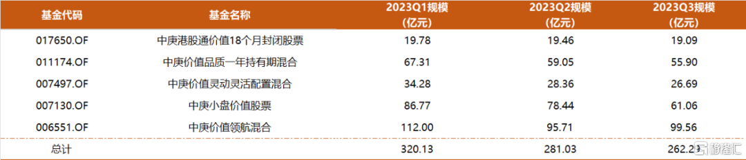 从这5只基金的规模来看,除中庚价值领航以外,其余4只基金的规模均有不同程度的下降。