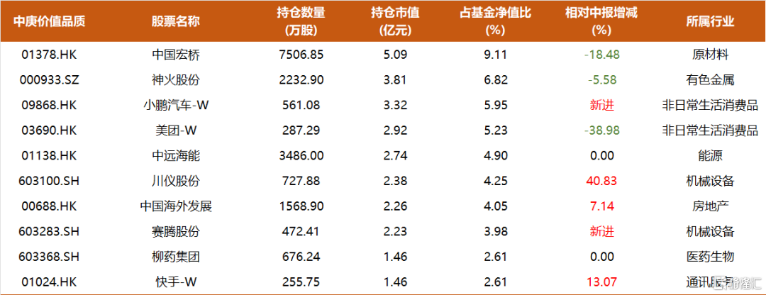 在今年上半年,中庚港股通价值首次买进小鹏汽车,二季度末持有5个点,进入了该基金的前十大。
