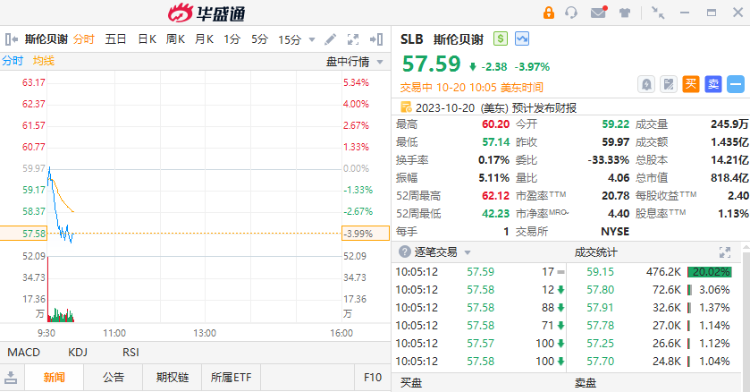 斯伦贝谢跌超4%,公司第三季度营收83.1亿美元,同比增长11%,略低于市场预期的83.2亿美元。其中北美营收环比下降6%,这是自2021年初以来首次出现环比下滑。