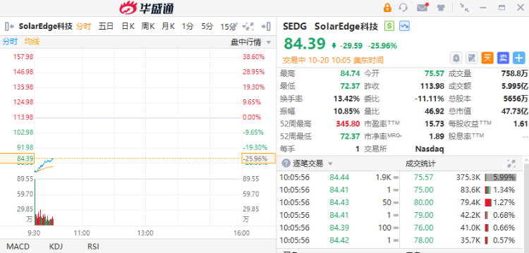 SolarEdge科技跌近26%,公司大幅下调第三季度的营收指引,称由于渠道库存高于预期,以及安装率低于预期,欧洲经销商意外取消了大量现有的积压订单。随着去库存过程的继续,第四季度的营收预计将大幅下降。