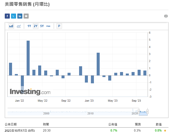 通胀顽固,美国9月零售数据远超预期!褐皮书报告显示美国经济前景稳定